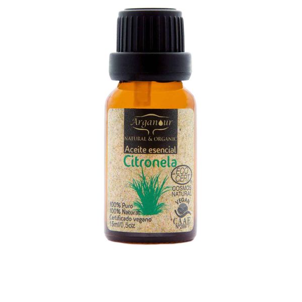 El "Aceite Esencial de Citronela Arganour 15 ml" es un producto natural que se extrae de la citronela, una planta aromática conocida por su fragancia fresca y cítrica. A continuación, se presentan las características clave de este aceite esencial: