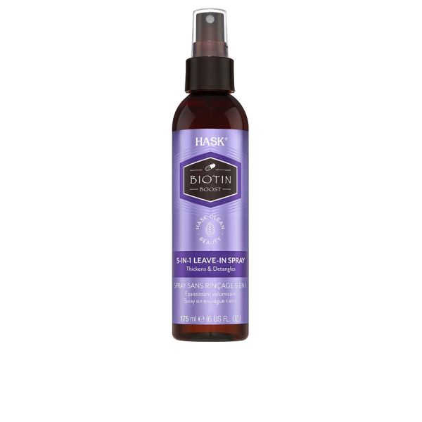 El Hask Biotin Boost 5-in-1 Leave-In Spray es un producto versátil diseñado para cuidar y mejorar la salud de tu cabello de múltiples maneras. Enriquecido con biotina y otros ingredientes beneficiosos, este spray sin enjuague ofrece una solución completa para el cabello débil o dañado.